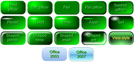 The strength of this product is the fact that it doesn't make use of predefined bitmaps, created with expensive graphical applications, in order to render buttons surface: it calculates the 3D rendering of the surface using a proprietary algorithm whose quality cannot be found in any of the few competitors on the market: this will allow to save time and money each time you will have to make a customization of your applications; furthermore, thanks to the use of predefined 'templates', you can change all the settings of a button with a single line of code during the application execution.