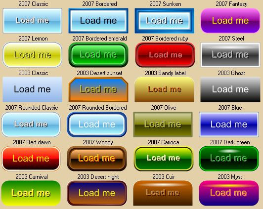 A few screenshots, taken from our application 3D Button Visual Editor (developed using 3D Active Button Magic as a " button engine") displaying some available and ready to use button templates. The only limit on creating these buttons is your fantasy.
