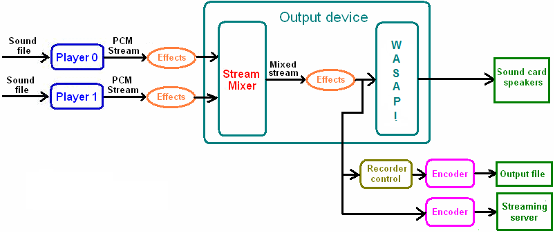 The enhanced spectrum analyzer can be accessed through the DisplaySpectrumEnh property which implements the SpectrumEnh class; an enhanced spectrum analyzer can be instanced for each of the players allocated through the InitSoundSystem method by calling the SpectrumEnh.Create method: as seen for other embedded visual feedbacks, the graphic rendering is performed on the surface of a hosting window.