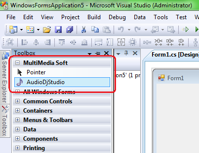 When versions 2005 and/or 2008 are chosen the installation procedure creates a tab named "MultiMedia Soft" inside the toolbox of the corresponding IDE; inside this tab the installed component will be visible as seen on the screenshot below: