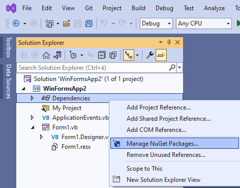 Adding the API to a Visual Basic .NET project (.NET Core 3.1 - .NET 5 and higher versions) |