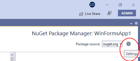 | • | By default the NuGet Package Manager will browse packages available on the nuget.org server; although trial versions of our NuGet packages are available inside nuget.org, it's recommended using packages available inside the folder in which you installed any of our components: the default folder is "\Program Files\MultiMedia Soft" so you need to set the mentioned folder as a packages source through the NuGet Package Manager settings |