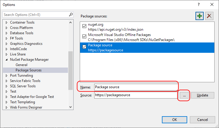 | • | A new default "Package source" is a automatically added as seen below |