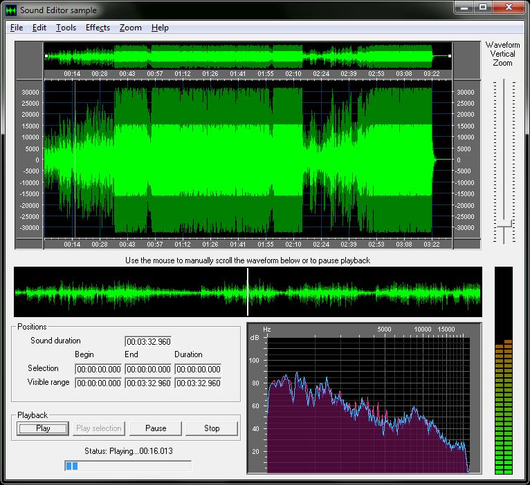 - Play the loaded and edited sound or any portion of the same: if you should need more sophisticated playback features, like visual feedbacks during playback, consider using this component in conjunction with Audio DJ Studio for .NET component.