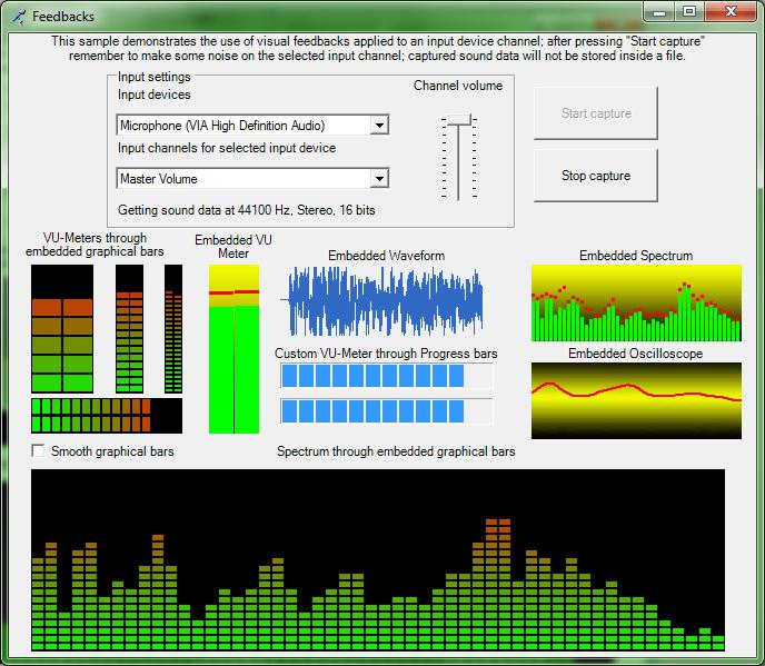 In case you should be using a Microsoft's development environment not based upon the .NET framework, like Microsoft Visual Basic 6 or Visual C++ in conjunction with MFC, or if you should be using development environments not belonging to the Microsoft's catalogue, a possible alternative could be using our Active Sound Recorder ActiveX control. |