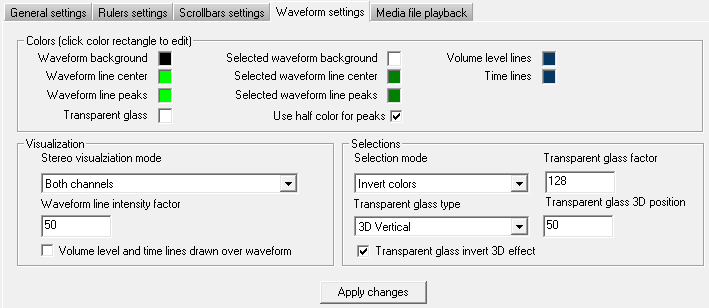 The waveform scroller supports direct mouse interaction: through the left button of your mouse you can modify the current position by pressing the left button, moving the mouse horizontally and finally by releasing the button when the needed playback position is reached. During playback, pressing the left mouse button will also put the player in paused state; by releasing the mouse playback will be automatically resumed.