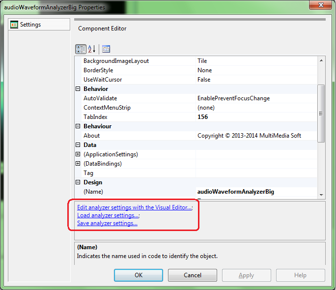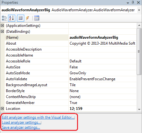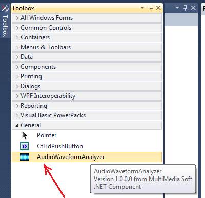 | • | As you can see there are two versions of the component: the one with assembly name "AudioWaveformAnalyzerF4" is intended for usage with container applications targeted for .NET framework 4 or higher while the one with assembly name "AudioWaveformAnalyzer" is intended for usage with container applications targeted for .NET framework 2.0, 3.0 or 3.5 so you may decide which of the two version best fits your needs. |