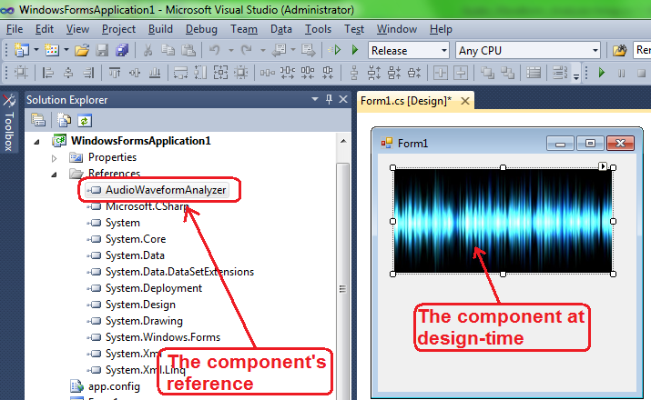 Adding the component to a Windows Forms project (.NET Frameworks from 2 to 4) |